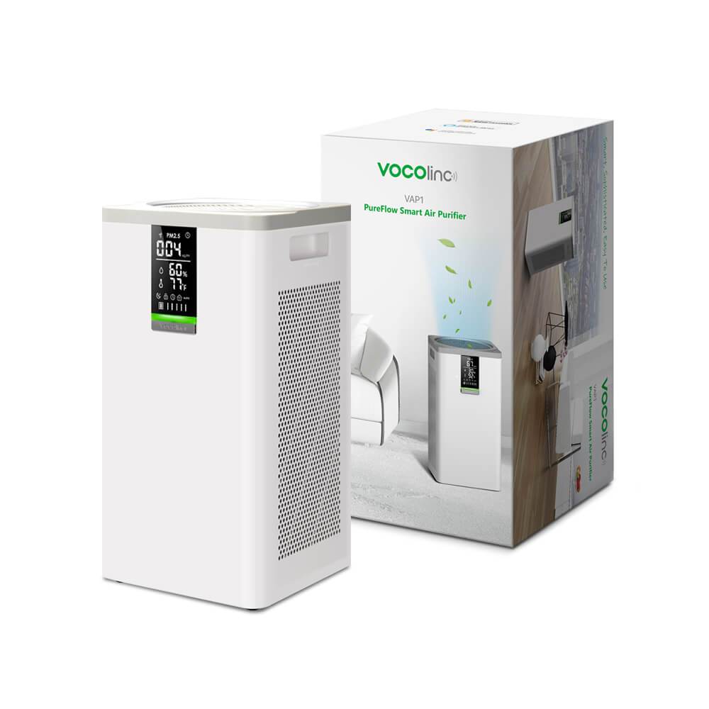 Styr luftrenseren med Alexa, Siri eller Google Assistant for å betjene enheten både hjemme og utenifra. Stor LED-skjerm for rask betjening, som lar deg styre luftkvalitet, temperatur og fuktnivå.